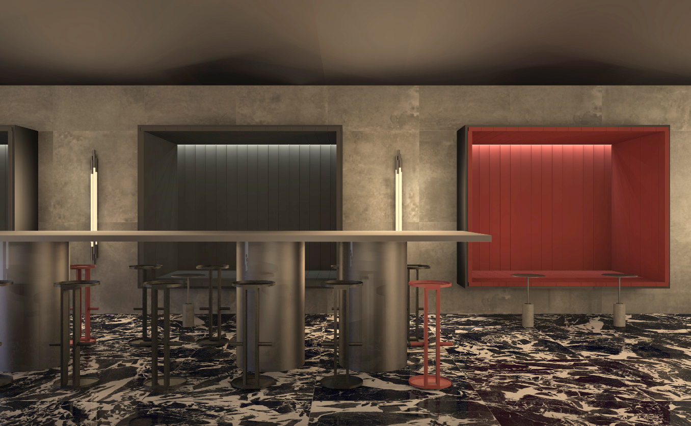 This is a project imagining the branded space Koinzidenz, a bar where strange things happen all the time. Mysterious monk, twin boys and devils flight are not only cocktails, but stories that can’t be explained rationally. The hypnotic atmosphere created with the interior design and the branding is matching the stories.