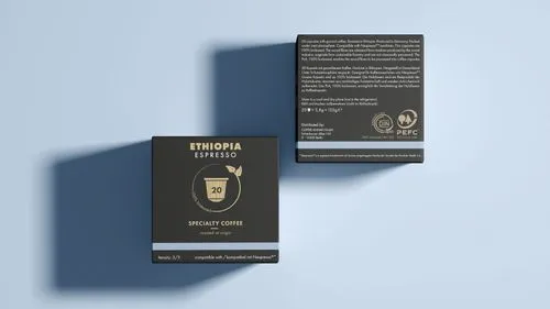 We created the packaging for their coffee capsules in various colors to highlight their different origins. The capsules are made out of biodegradable wood residues from the wood industry. This is also mirrored by the packaging design. Inside every box is more information about the person who roasted the coffee.