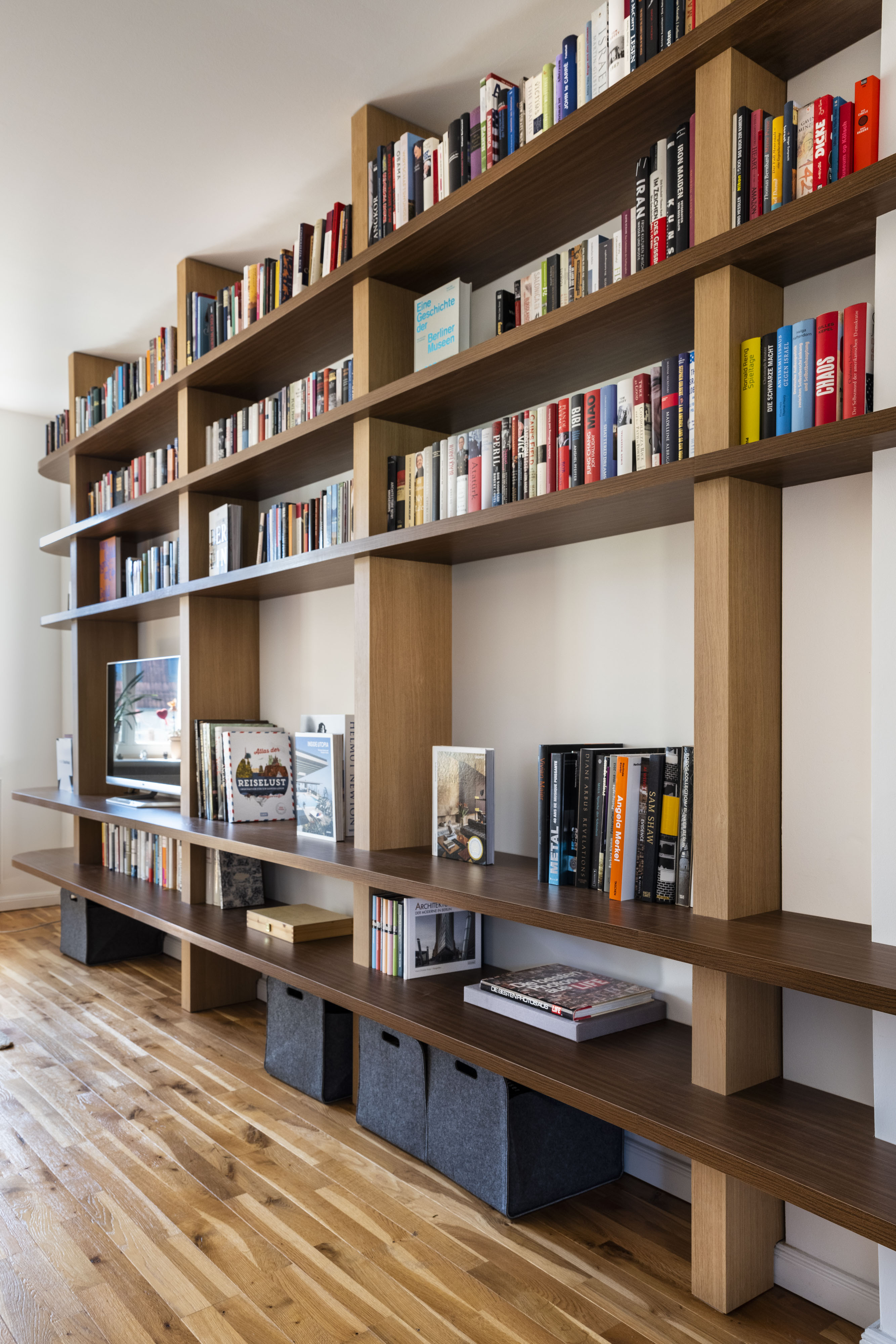 Finally, a large bookcase of more than 5 meters long was installed in the living room, to also display and store the many books of our customers.